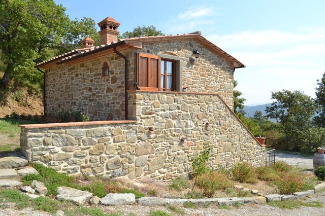 It’s an independent apartment on two floors, with entrance from external staircase, located 50 meters away from the previous houses. The first floor is composed by a kitchen-living room, double bedroom and bathroom with shower. The kitchen consists of fridge, freezer, dining table for six people, sofa and lovely wood burning stove. The bedroom offers bedside tables, wardrobe with full length mirror inside.